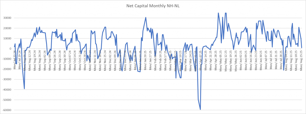 The market erased its losses from yesterday. NH/NL were mostly unchanged. One thing of note is the Capitalized NH dropped making the net essentially zero.