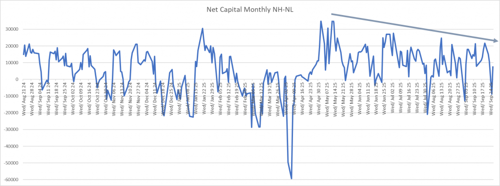 The market recovered on Friday. So far, this still looks like a typical pull back to value it has been doing the last few months. The NHNL and Capitalized NHNL has also recovered a little.