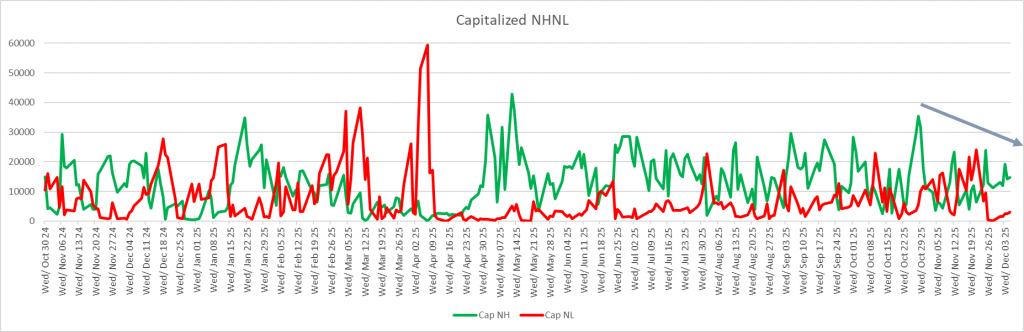 The capitalized NHNL is showing a bearish divergence. That is certainly something to keep an eye on.