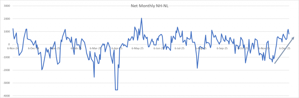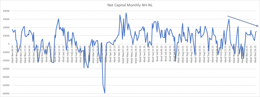 When the AI bubble finally pops, I imagine this is what it will look like. With the market being so top heavy, the Capitalized NHNL will probably be negative with the NHNL being positive for an extended period of time. I don’t believe the AI bubble is popping yet. Just a thought of what it may look like. No idea.