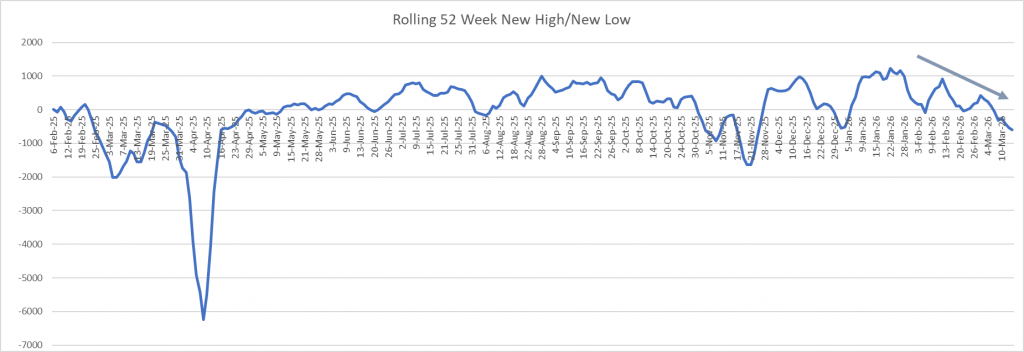 The 52 Week High/Low is now squarely negative and has not reversed. I am now waiting to see where the market finds a bottom and I can be aggressive going long again.