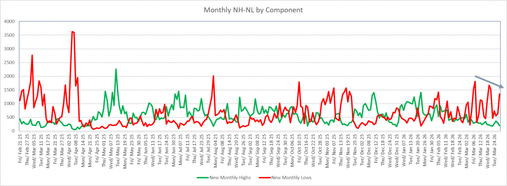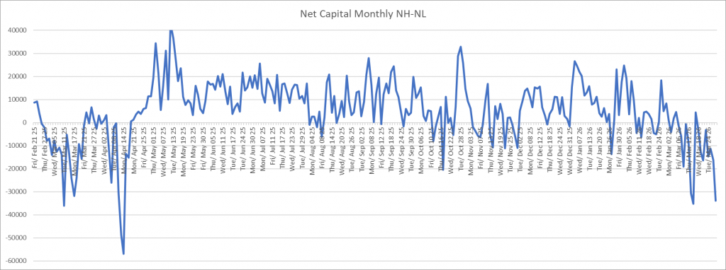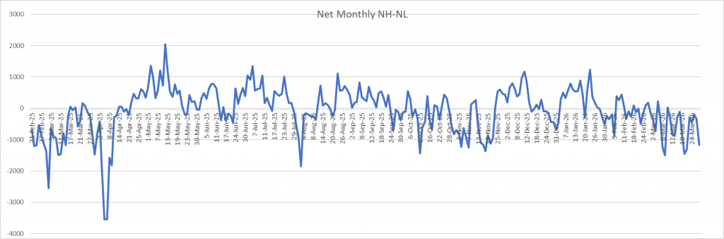The net monthly NHNL is below -1000 and in an area where I look for short term reversals: